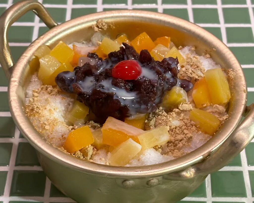 最後一定要點黃豆粉刨冰,口感像雪花冰但又有點嚼勁,裡面還藏著紅豆和水果,加上煉乳真的超幸福,一吃馬上想續盤那種!很適合晚餐後來這裡慢慢吃、慢慢聊的地方~