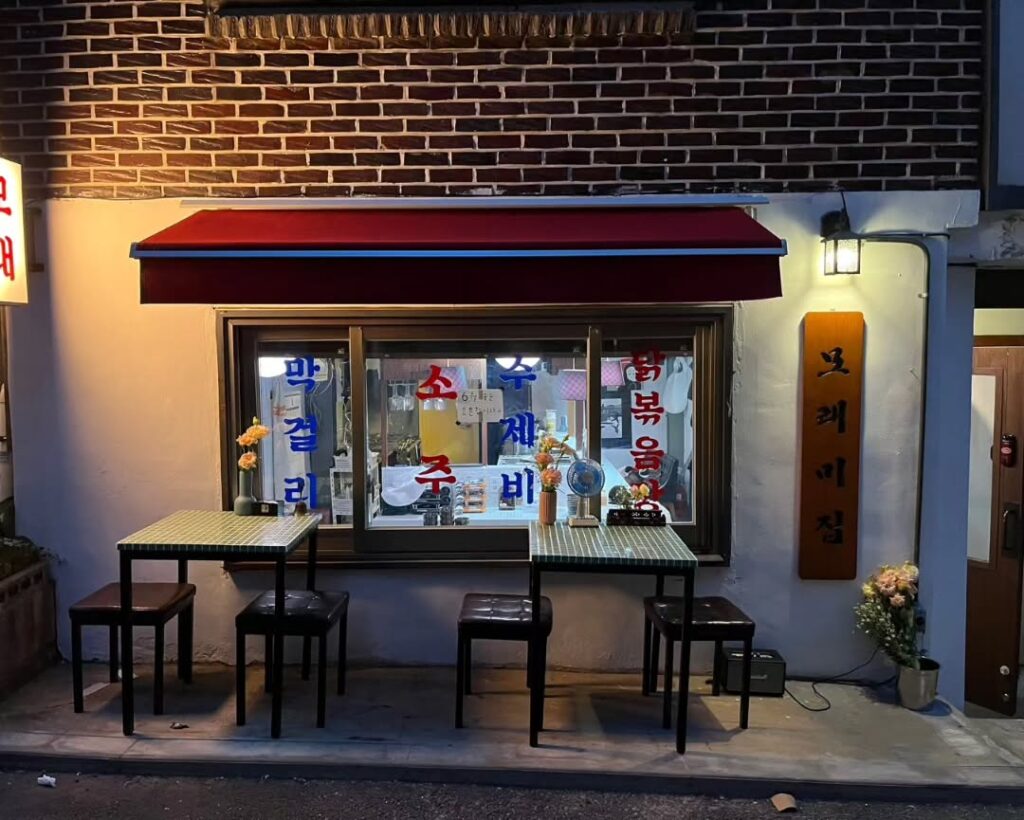 如果你也想體驗溫暖又特別的韓式家庭風味,這間延南洞的 모래미집真的超推!小小的店裡燈光溫柔,氣氛超chill,老闆也超親切~他們的白切肉完全沒有腥味,搭配泡菜和豆腐好好吃。