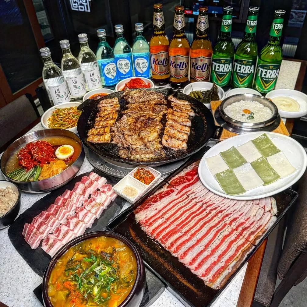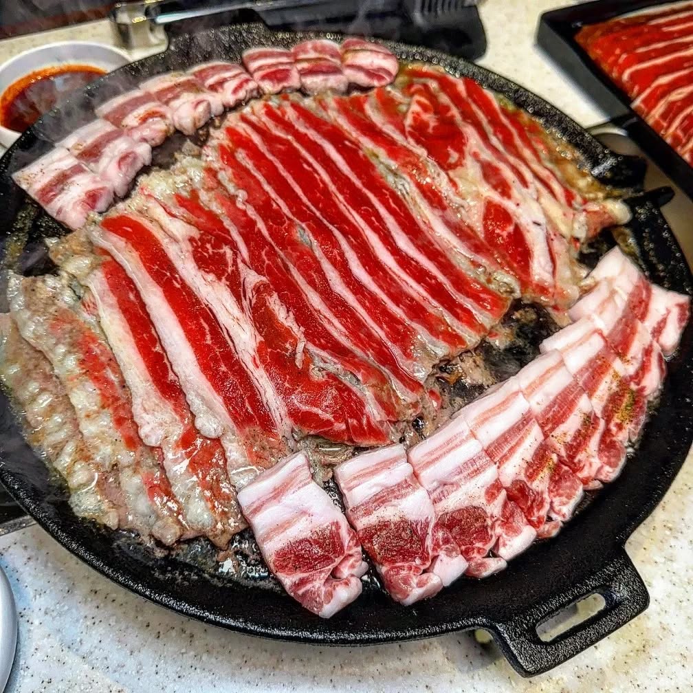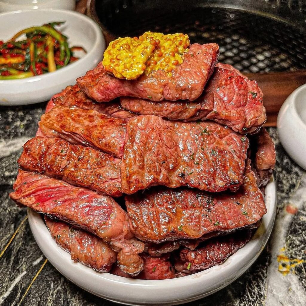 這家烤肉店特別推薦的是他們的雪花韓牛,肉質軟嫩鮮甜,輕輕烤過之後入口即化。另外,豬五花也絕對不能錯過,油脂均勻,烤至酥脆後搭配店家特製的韓式醬料,香氣十足。小菜種類也很豐富,尤其泡菜跟醃蘿蔔特別爽口解膩,是搭配烤肉的絕佳組合。