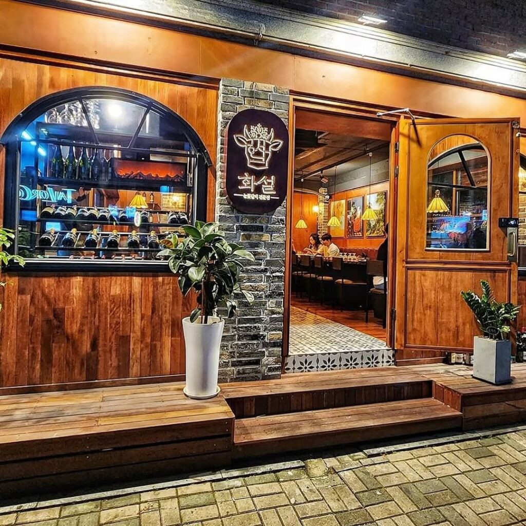 花雪(화설)是延南洞人氣超高的韓式烤肉店,以提供高品質的韓牛和豬肉聞名。店內裝潢採用現代簡約風,燈光柔和,座位之間的空間也很寬敞,整體用餐氛圍很舒適。