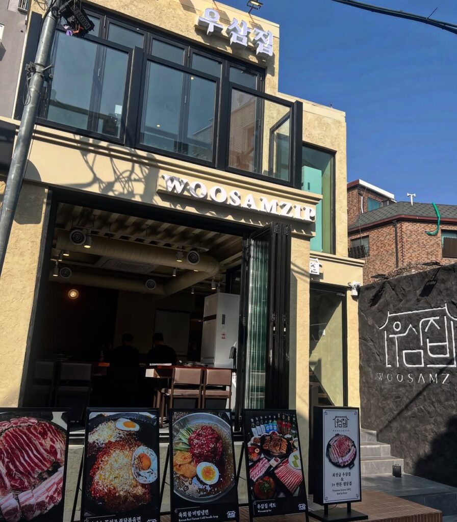 延南洞這間烤肉店「우삼집」不但肉好吃,整體體驗也讓人超滿意!主打牛五花+三層肉的雙拼組合,還有一定要點「烤年糕」,烤得微焦的年糕片包上蔥絲和牛肉,一口咬下超滿足~