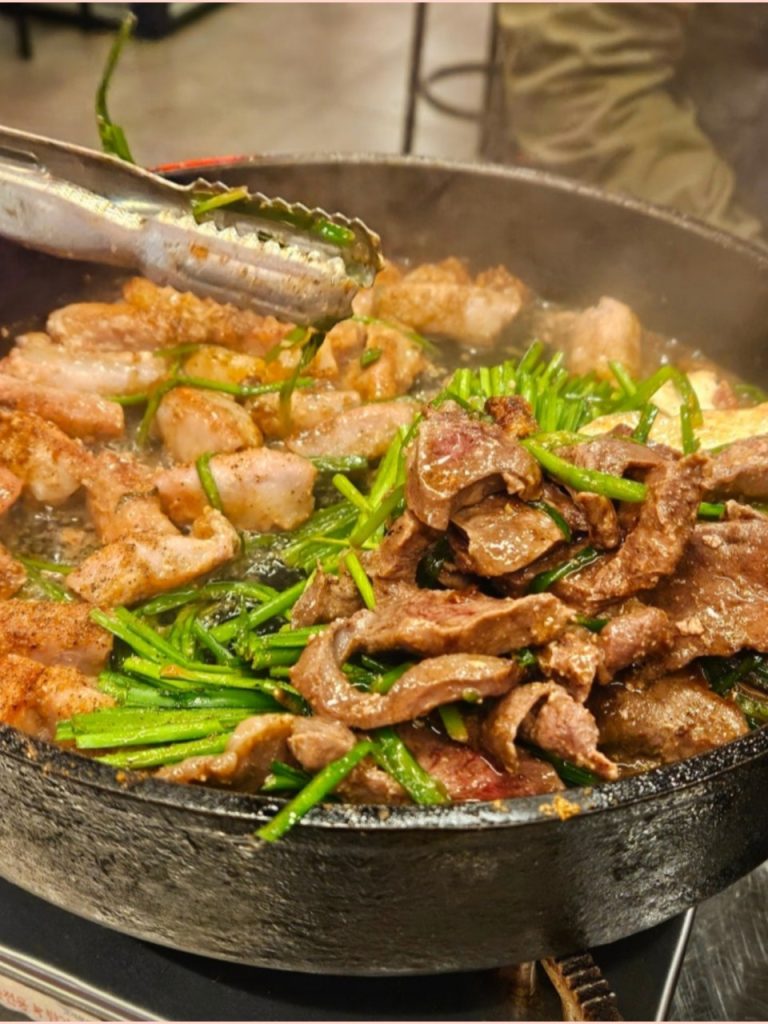 三個女生吃得超飽,竟然不用台幣一千,還能自己無限續拿泡菜、生菜、蒜頭跟豆芽,對愛包生菜吃肉的人根本天堂~烤肉是自己動手烤的那種,肉超級厚實,點了豬頸肉和五花肉都完全沒有腥味,口感Q彈。推薦一定要加點水芹菜一起烤,吃起來清爽又解膩!最後別忘了來份炒飯收尾,店員會幫忙炒出香噴噴的鐵板飯,滿足度破表👍