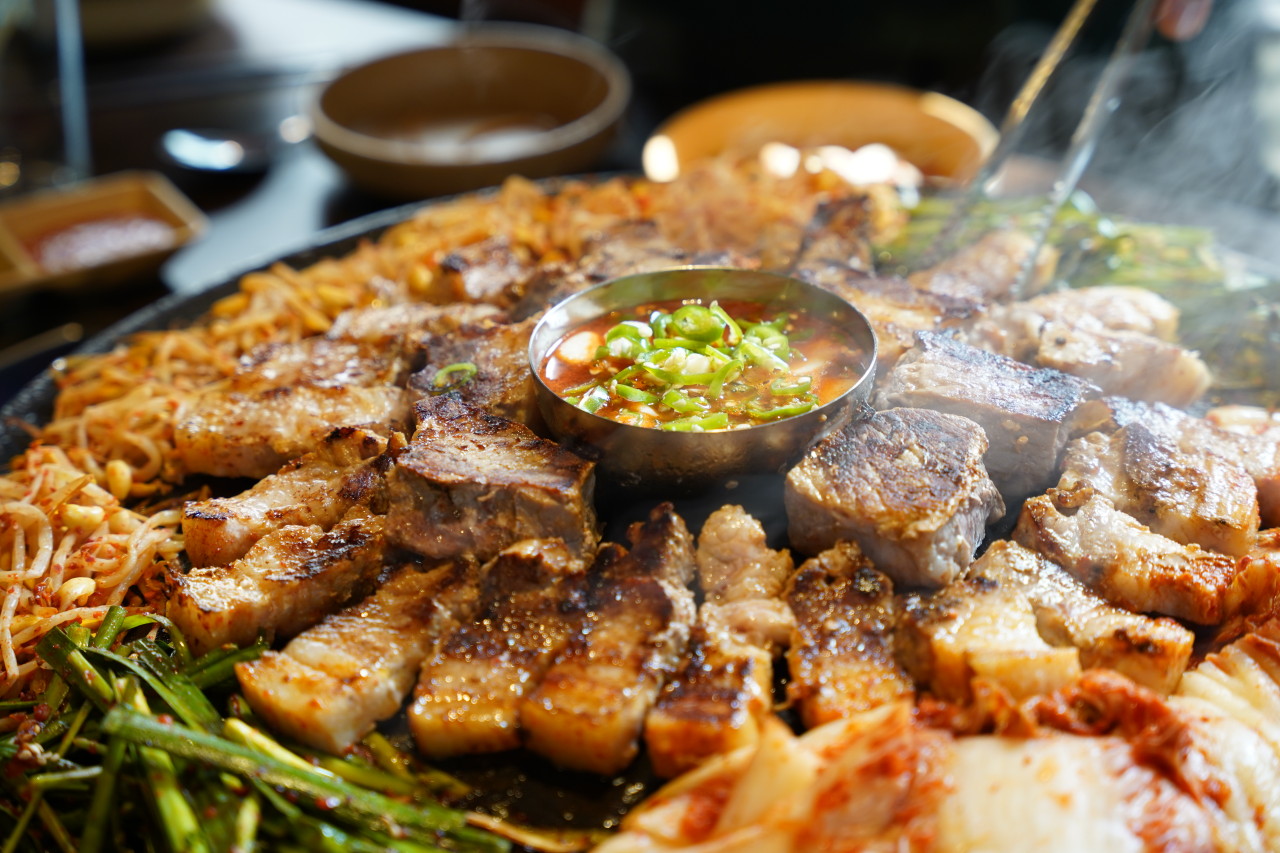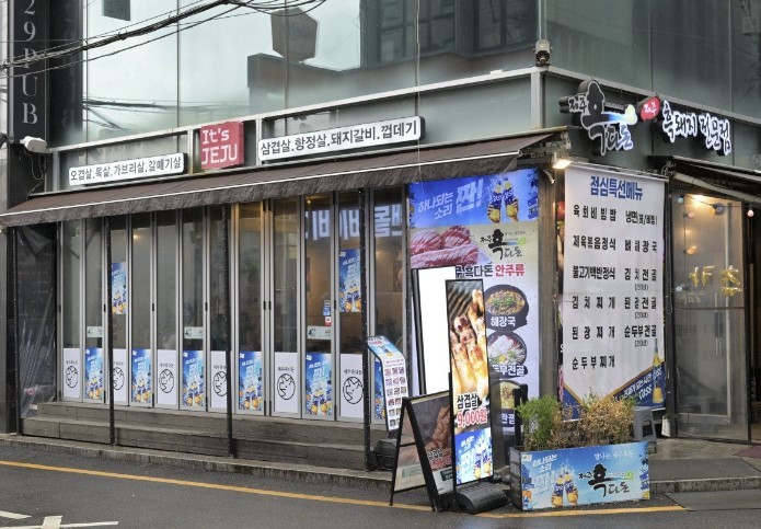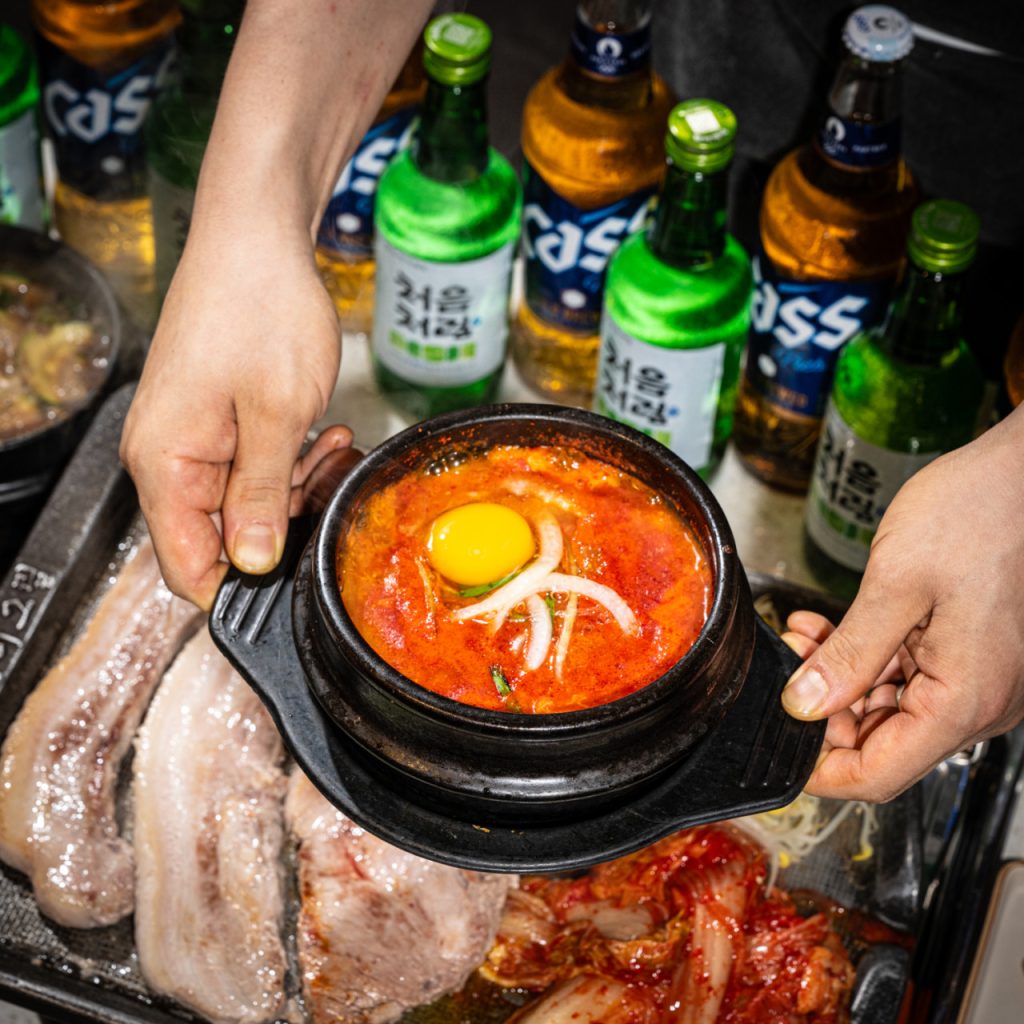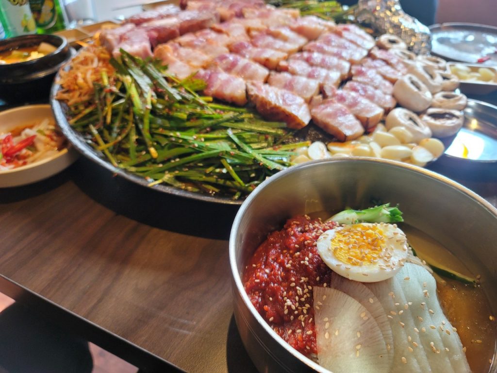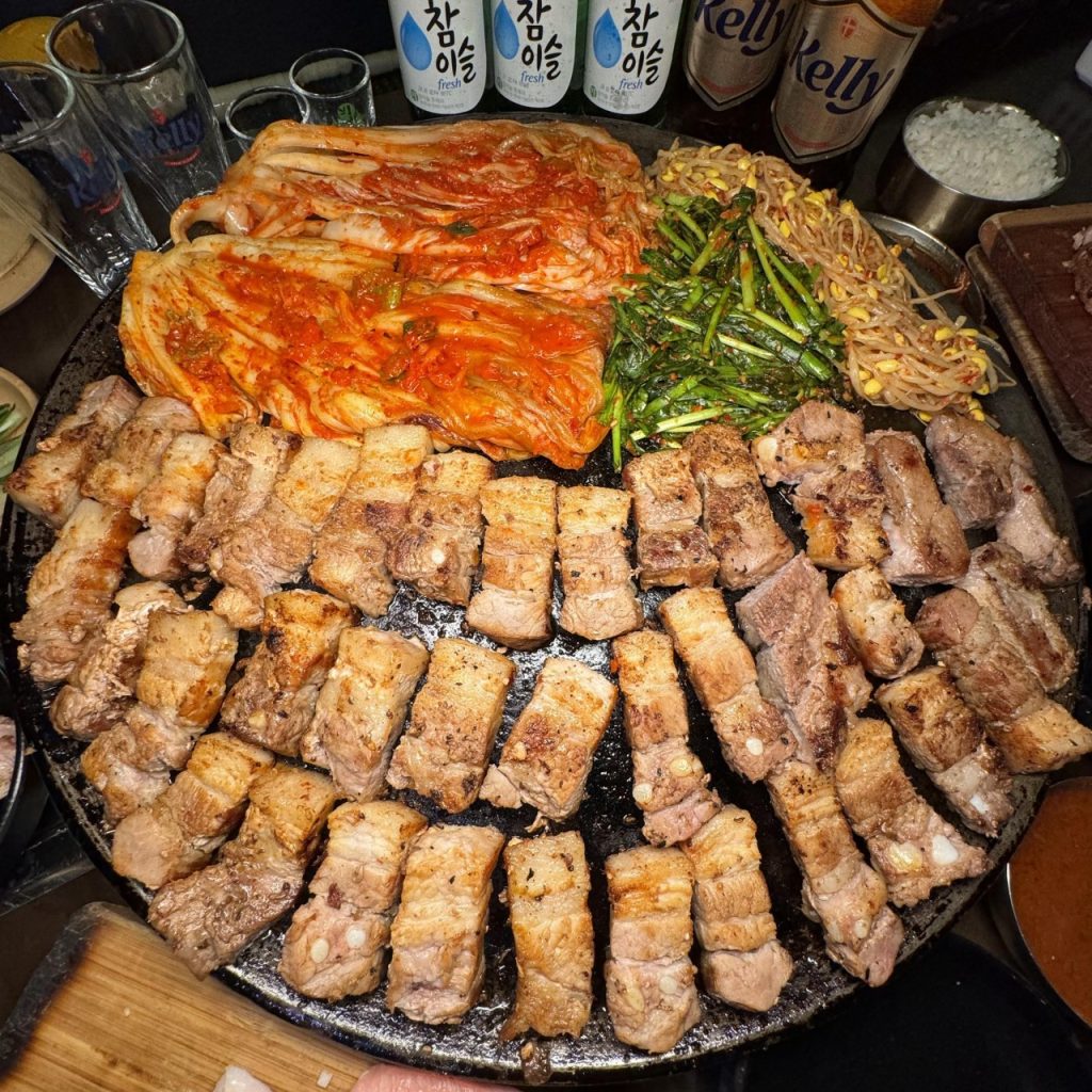 店裡人氣超旺,大部分都是本地人用餐,氣氛很熱鬧很有韓劇感,服務也很親切。烤肉主打濟州島黑豬肉,水芹菜包著豬肉吃很加分!小菜還能無限續加,對獨旅也很友善,是江南這一帶CP值超高的烤肉店!