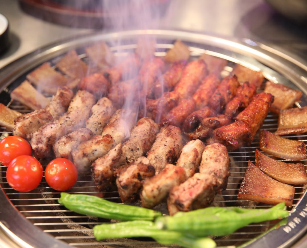 烤肉有薄片豬五花、豬頸肉、豬皮等,最推的是薄片五花,煎得脆脆超涮嘴。每桌都會附上一大盤小菜,滿到像在辦桌,小菜也能續加,配起肉來就是爽!整體 CP 值很高,推薦排進江南烤肉行程~