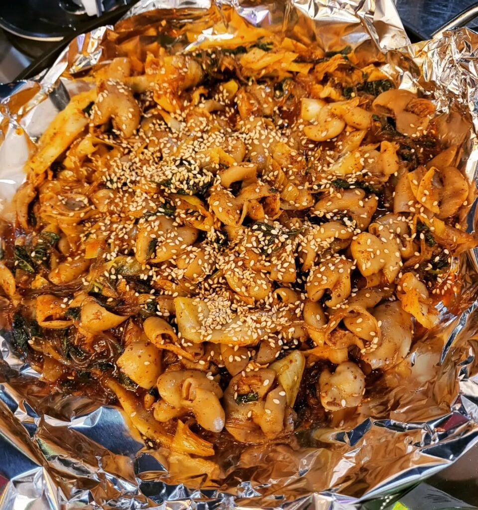 想吃辣炒牛腸一定要來這間「車銀優同款烤牛腸」,Naver 評分高達 4.91,是正宗韓式甜辣風味,辣度適中、香氣十足,就算平常不太吃辣的人也能接受。
