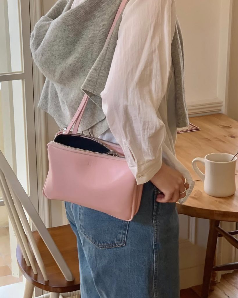 minitmute 是很多韓妞在 Instagram 上大推的品牌,風格就是簡約又帶一點俏皮感。特別是芭蕾粉和薄荷綠的 Clo Bag 系列,現場看真的會被燒到,配色太療癒了。