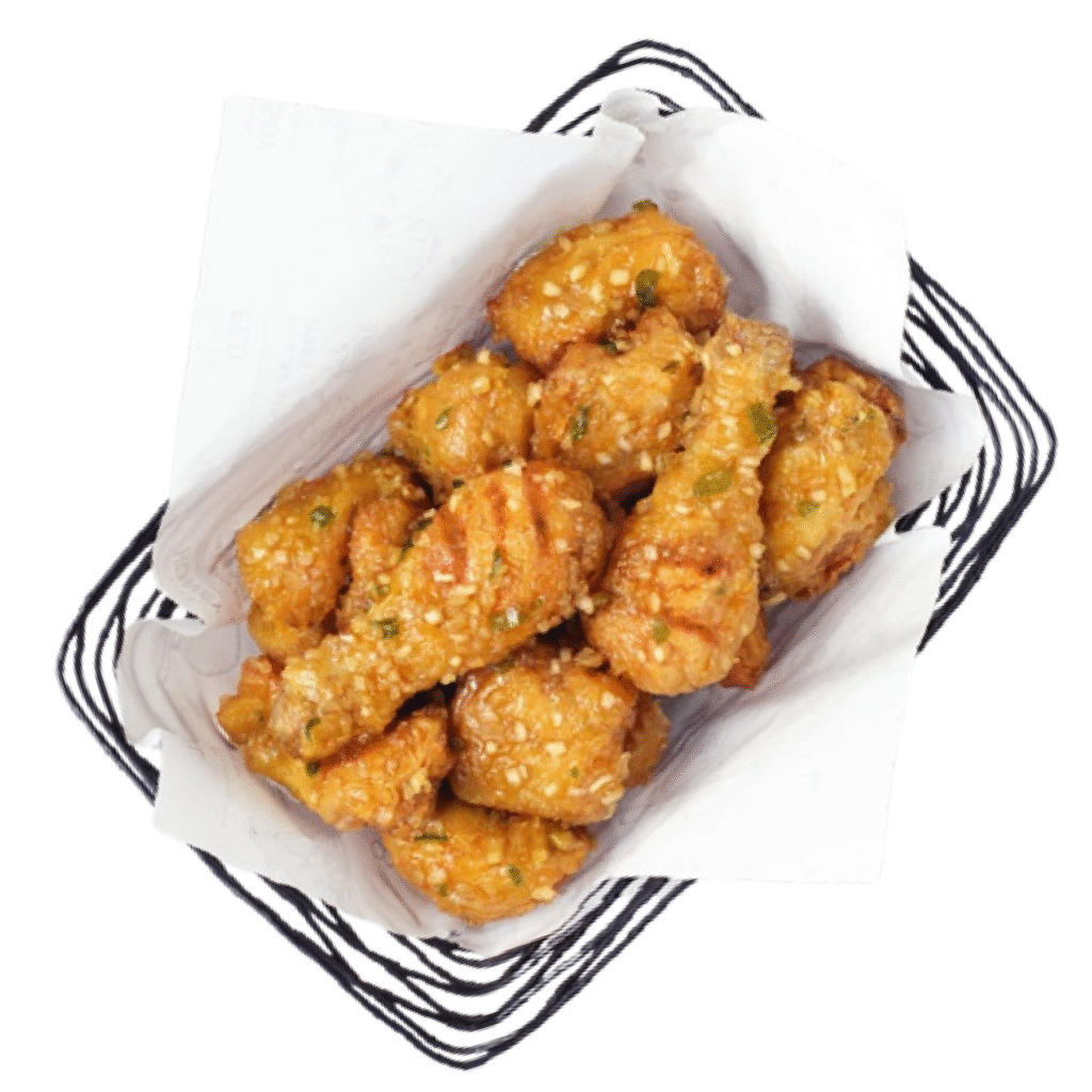 橋村創始的經典口味!它的靈魂是獨家的大蒜醬油,每一塊炸雞都是手工刷上醬汁,所以能完美地附著在薄脆的炸皮上,完全不會把外皮浸濕。吃起來是鹹香的醬油和濃郁的蒜香,非常涮嘴,是不敢吃辣的朋友最棒的選擇~