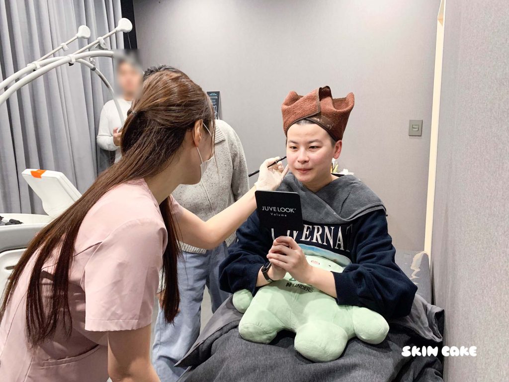 - 當天狀態:肌膚較敏感,施作完當下臉紅紅的,下巴範圍會有輕微腫脹。