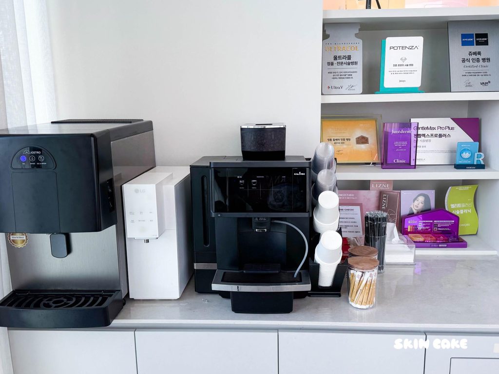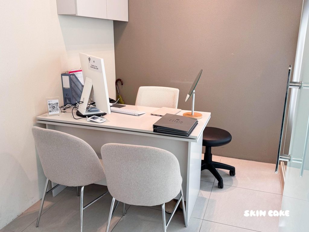 櫃檯人員會先核對預約資料,等待時間不會太久。院內配置半隔間和個人房,視不同項目做安排,隱私度還不錯。旁邊也有簡單的茶水可自行取用,喝杯溫熱的茶可以稍微放鬆一下